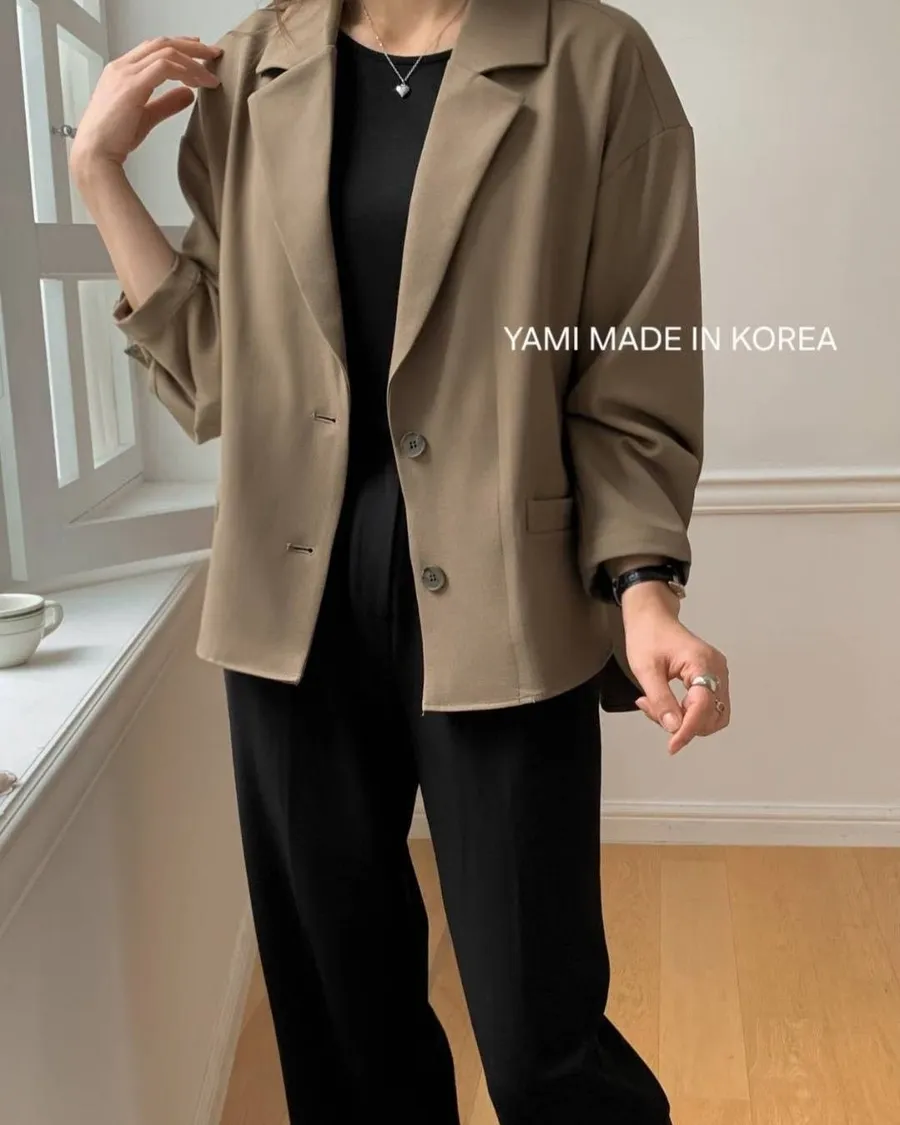 2. **百搭風格**:簡約的設計和合身的版型,適合各種場合和風格,無論是搭配褲裝還是裙裝,都能展現干練而不失柔美的氣質。