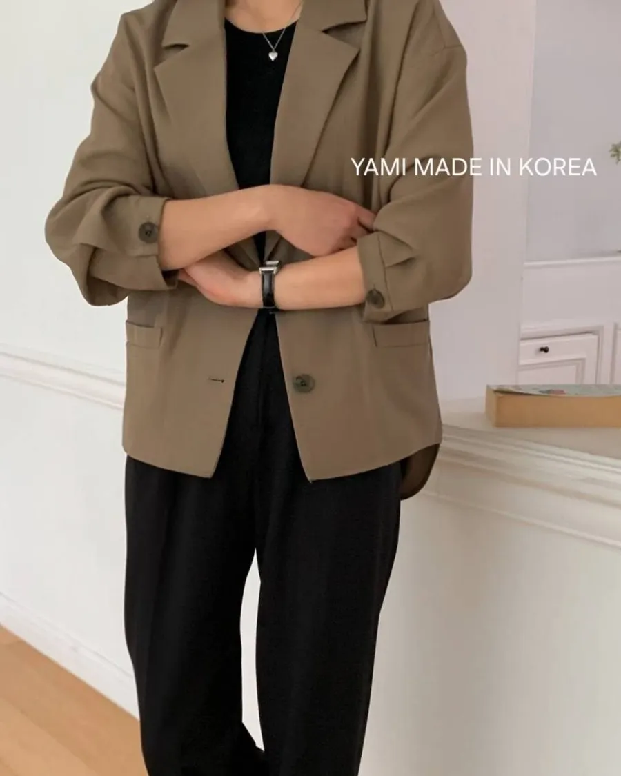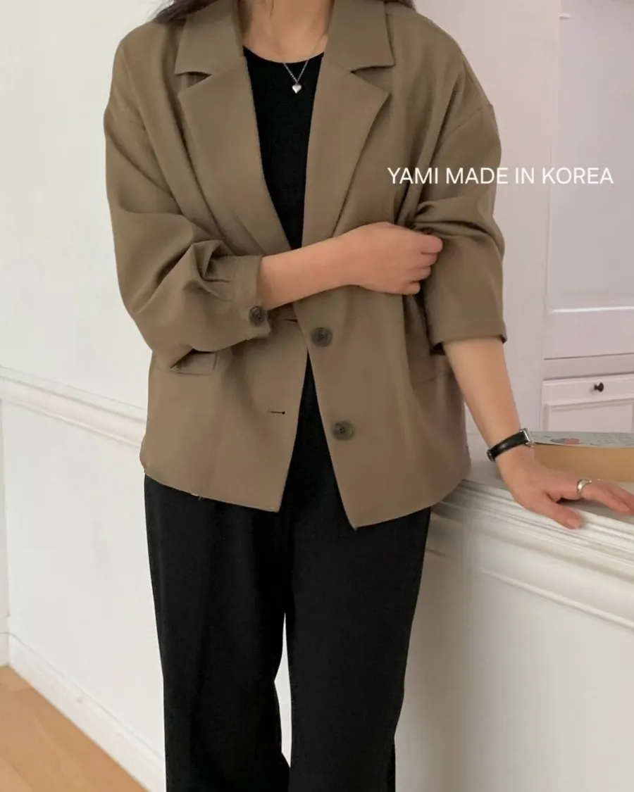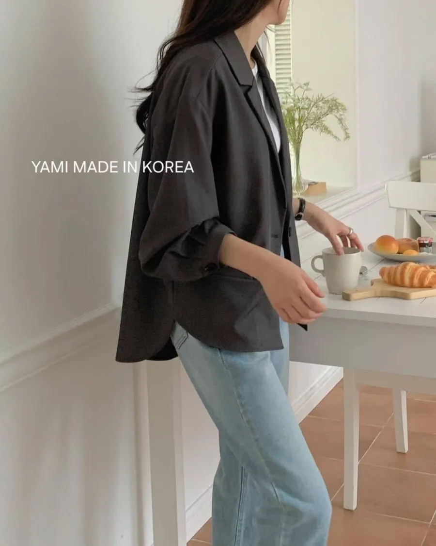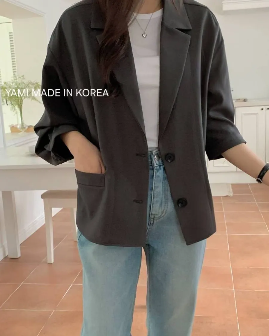 3. **韓國製造**:韓國製造保證了品質與細節,精緻的做工以及選料講究,讓這件西裝外套兼具時尚與耐用。