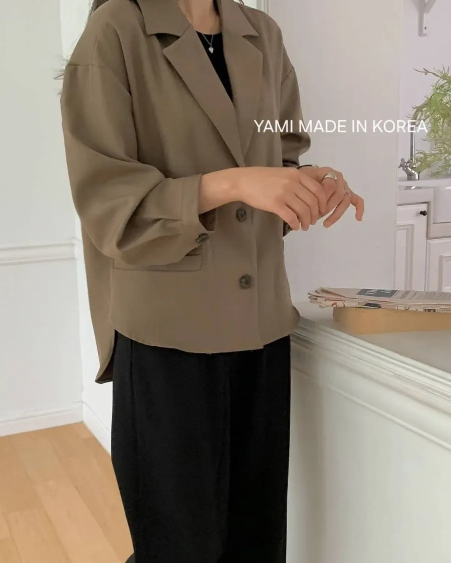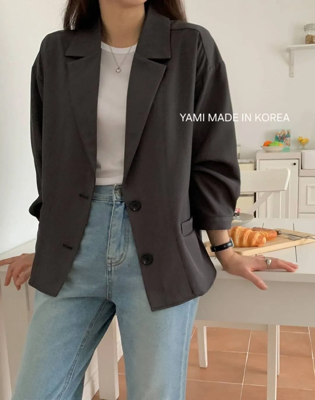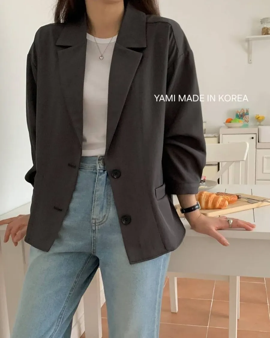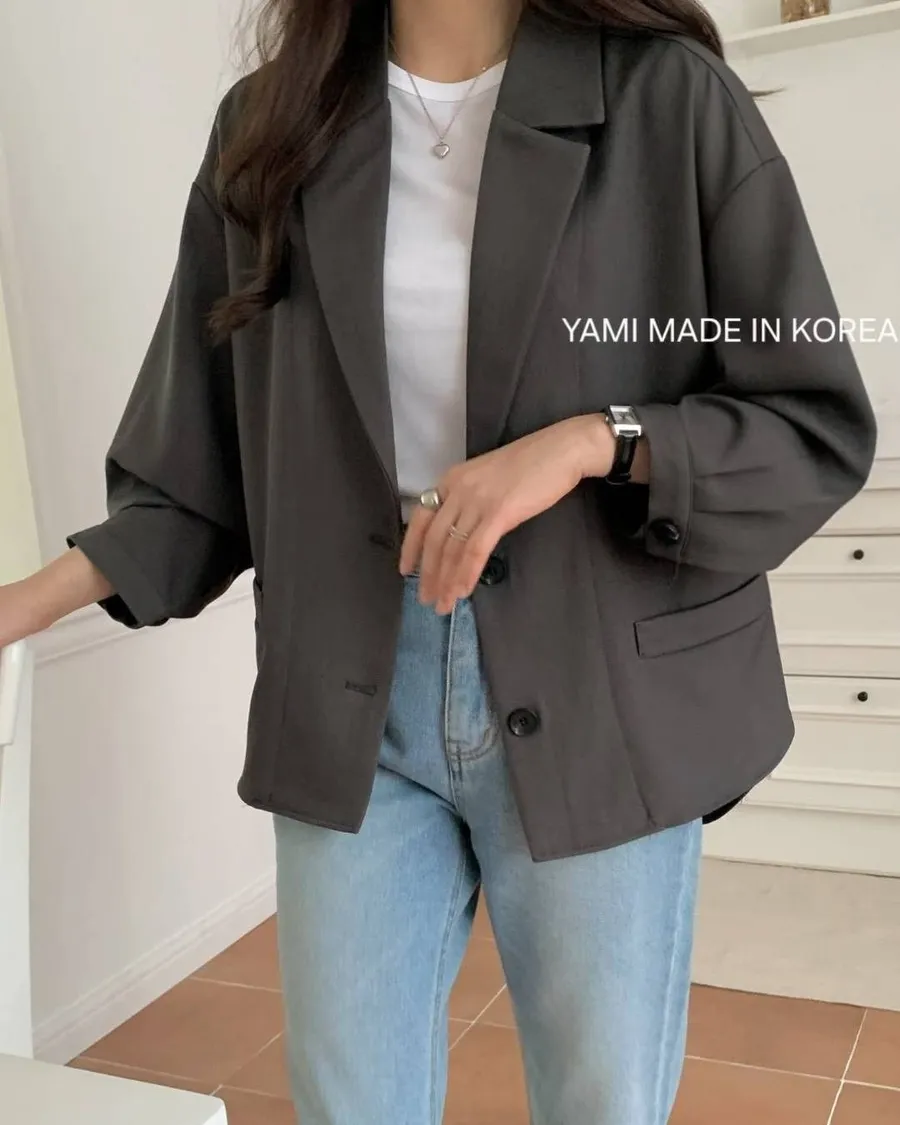 3. **韓國製造**:韓國製造保證了品質與細節,精緻的做工以及選料講究,讓這件西裝外套兼具時尚與耐用。