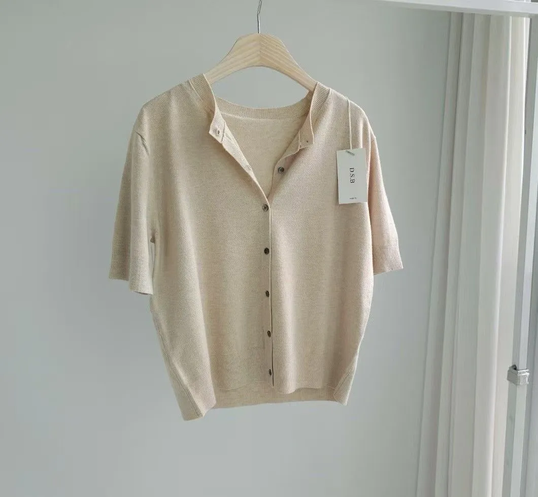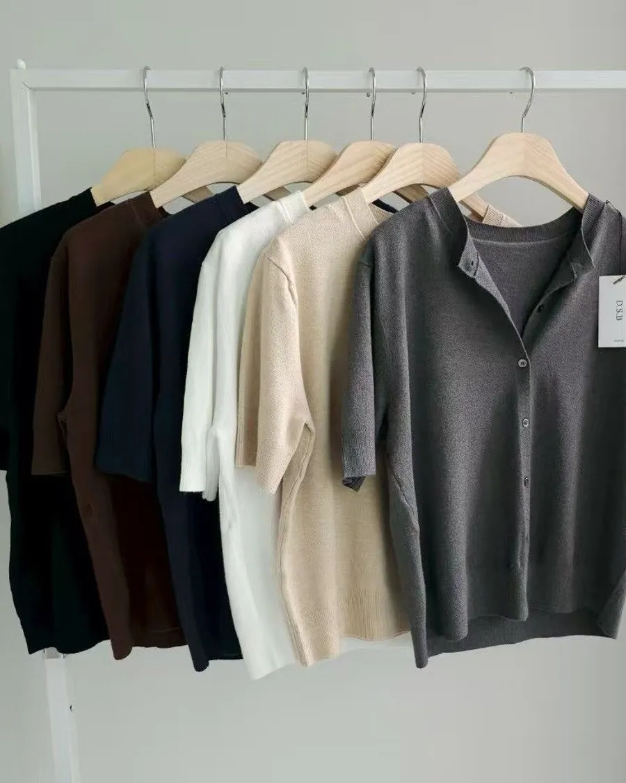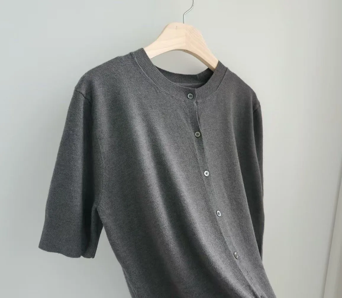 這款柔軟針織料子的圓領短袖小外套設計簡約,採用高質感面料,觸感輕盈舒適。圓領和短袖設計方便穿搭,前面有扣子設計,增添實用性與風格。多種顏色選擇,適合各種場合和心情,是日常衣櫥中的百搭單品。無論是搭配洋裝或休閒褲,都能輕鬆展現優雅氣質。
