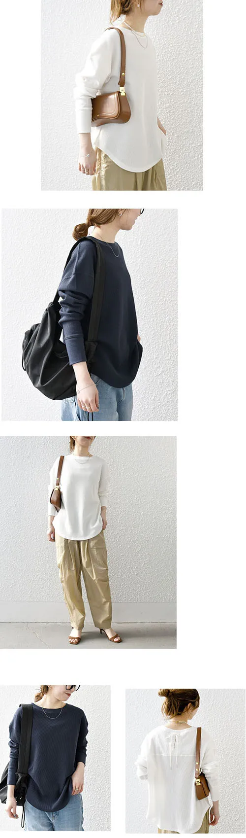 素圓領前後圓弧下擺剪裁 後綁帶衣