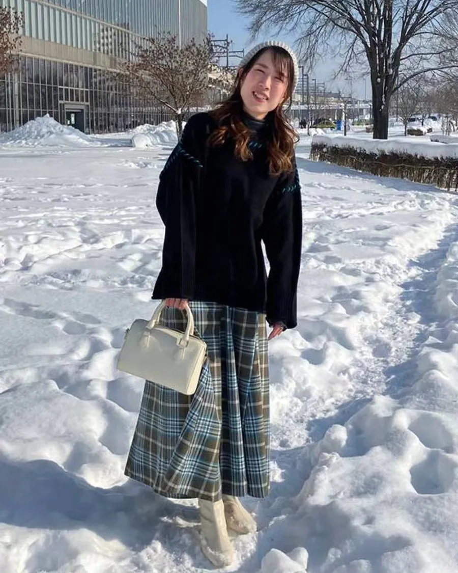 這款日本格子長裙採用典雅的格子圖案設計,展現出經典與現代的結合。