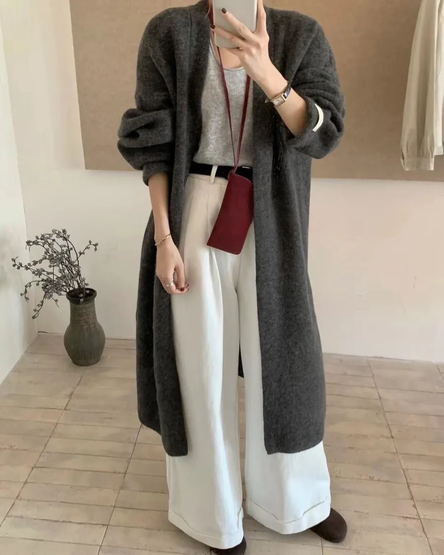 毛料長板針織長袖外搭罩衫以優雅的長版設計展現出極致的舒適感,適合秋冬季節穿著。採用優質的毛料製作,柔軟保暖又具透氣性。長袖設計提供足夠的保暖效果,簡約而又不失時尚感。這款罩衫可以輕鬆搭配各種服飾,無論是休閒風格或是正式場合都相得益彰。是一款既實用又時尚的單品。